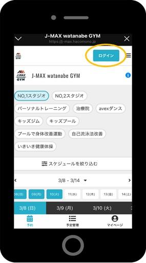 ①スタジオ予約を選択