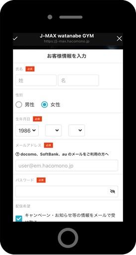 ②仮メールアドレス・仮パスワード入力